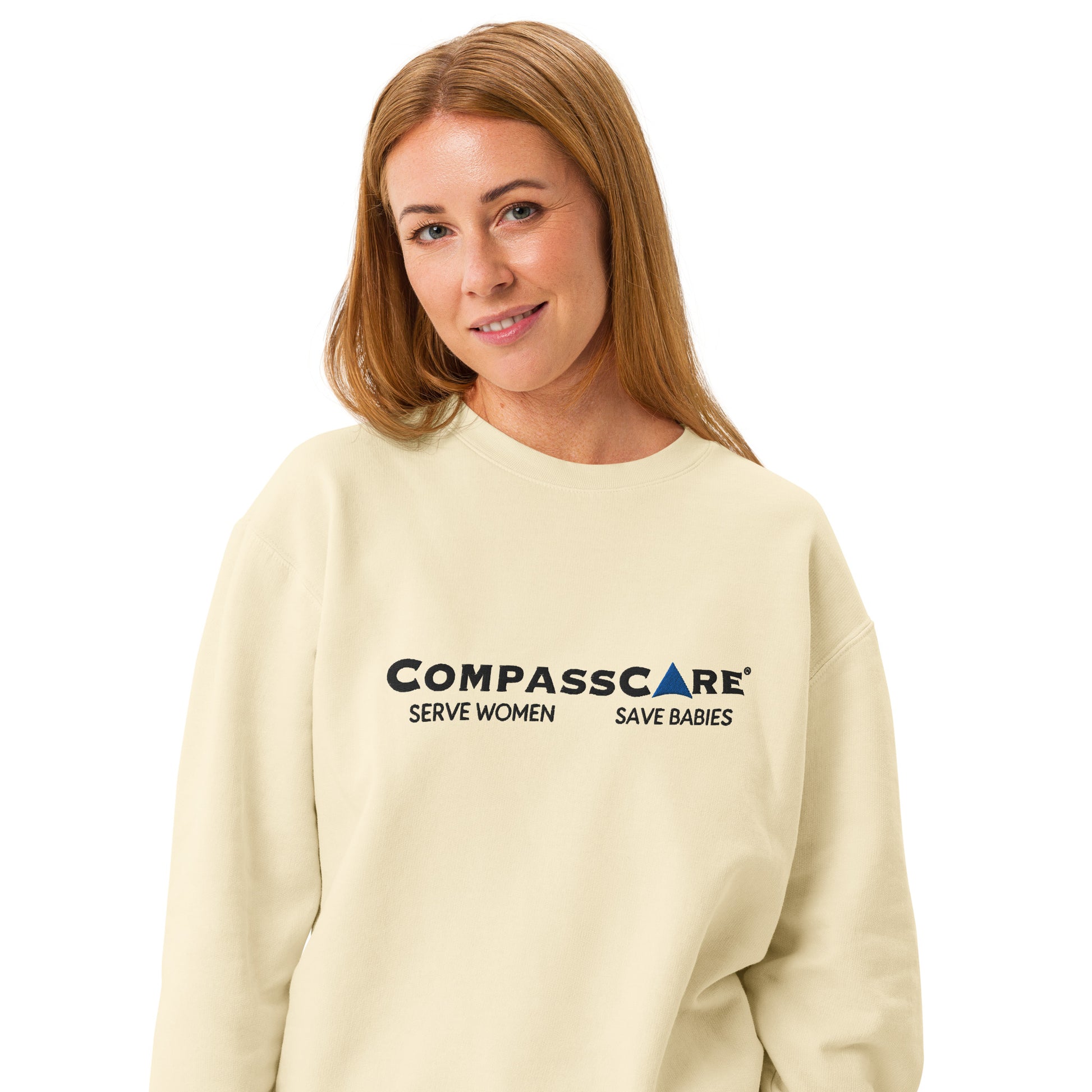 CompassCare Serve Women Save Babies fleece crewneck sweatshirt
